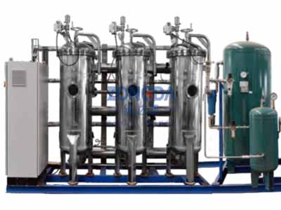 气体辅助自动反冲过滤器由过滤器本体,气源储气罐,切换阀、排污罐和PLC控制单元等产品组成系统。他的主要特点是可以自动反冲洗,并且在任意反冲洗期间,只有一个容器处于反冲洗,而另一个容器一直处于在线工作状态,可以不间断地过滤原料介质。